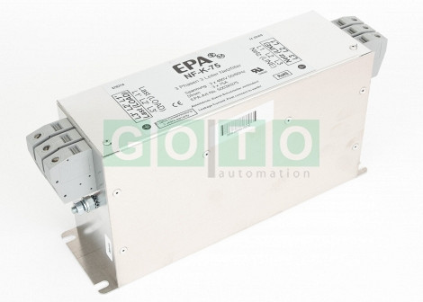 Compact mains filter for electrical drives, three phase 75A Nominal voltage: 520 VAC / 3ph Nominal frequency : 50/60 Hz Nominal current: 75A@50°C Leakage current: <2.0 mA nom.