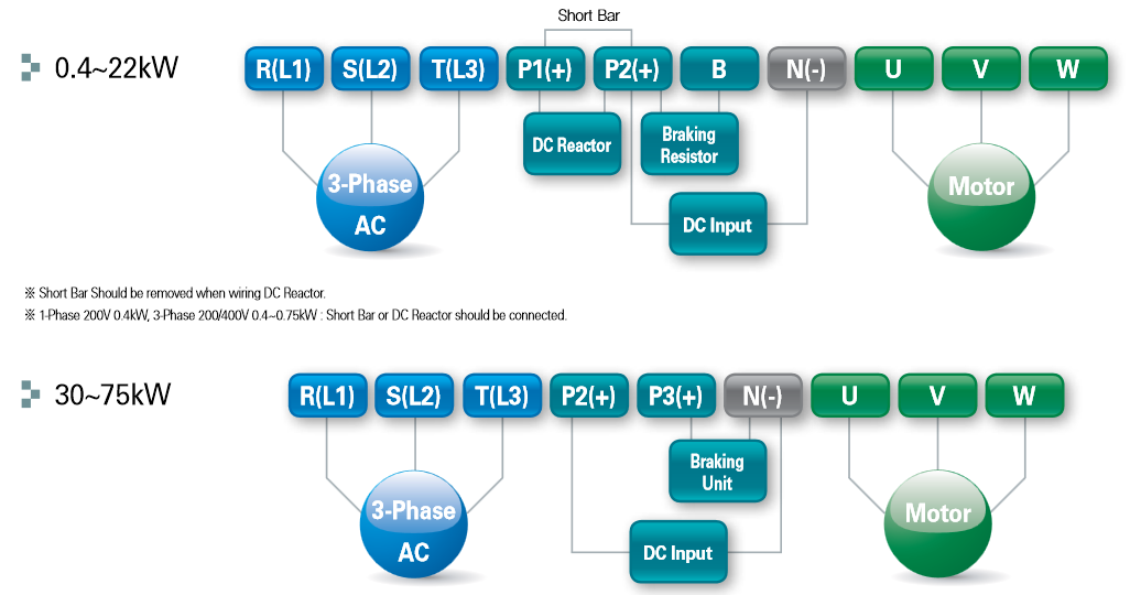 Dual Rating: Frekvenčni pretvornik nudi izbor eno stopnjo šibkejšega pretvornika za bremena s spremenljivim navorom (normal duty bremena: ventilatorji, črpalke,…).